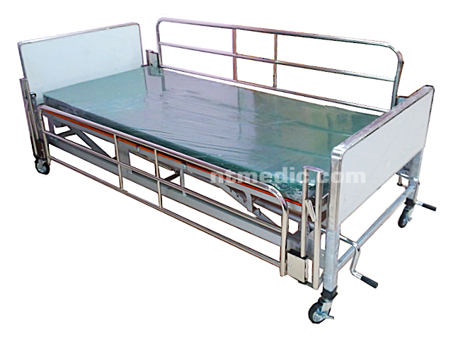 เตียงผู้ป่วย 2 ไกร์ มือหมุน ราวกั้นสแตนเลส+ที่นอนผู้ป่วย NT1008